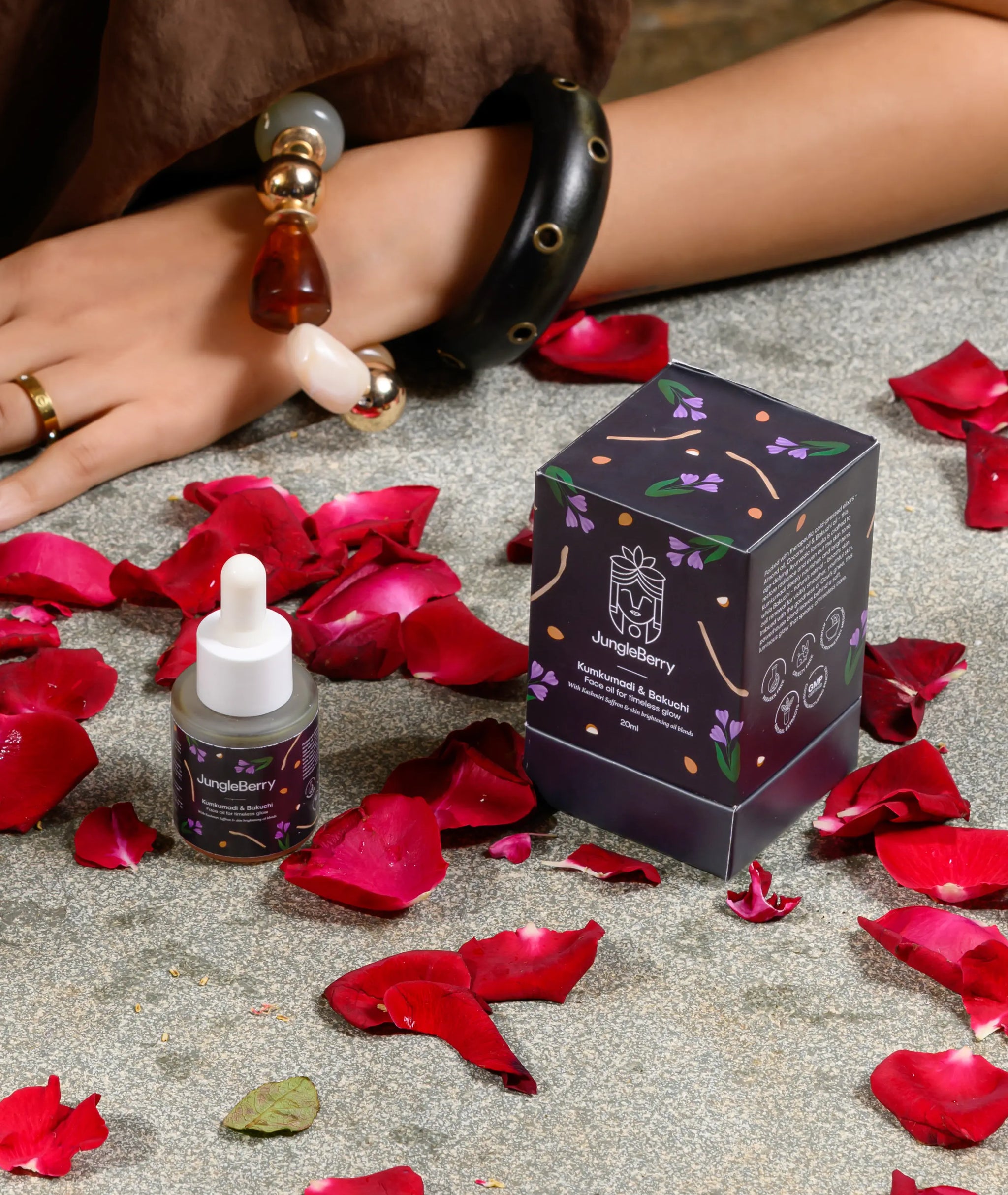 JungleBerry’s Kumkumadi & Bakuchi Face Oil is a luxurious Ayurvedic blend designed to bring back your skin’s natural glow. Infused with Kashmiri Saffron, nature’s finest oils and the Age-old wisdom of Ayurveda, this elixir works to restore radiance, reduce uneven skin tone and smooth out texture over time.