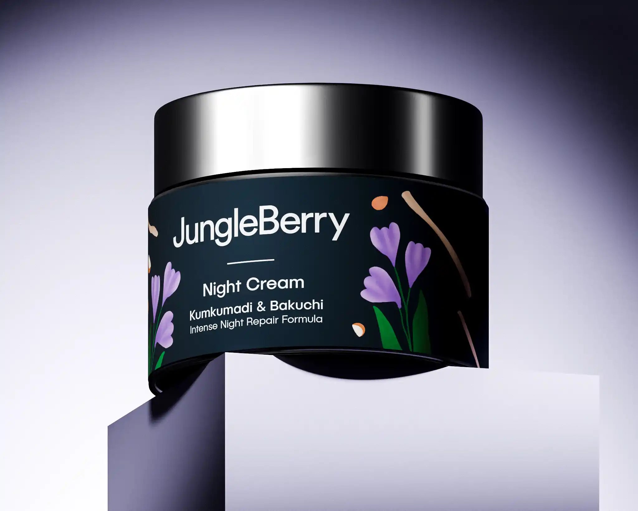 The JungleBerry Kumkumadi & Bakuchi Cream is an overnight miracle worker, blending ancient Ayurvedic wisdom with luxurious care. It has a rich blend of skin-brightening herbs, including Ashwagandha and Nagkesar, making your face glow with youthful vitality. Infused with Kumkumadi Oil, the “Liquid Gold of Ayurveda,” this powerhouse formula targets fine lines and wrinkles, effecting dermal rejuvenation while you snooze. Enriched with Cow Ghee, it restores skin radiance, ensuring a soft, smooth texture by morning. Bakuchi Oil—a revered Ayurvedic wonder often called nature’s retinol—supports skin renewal, improves elasticity and reduces dark spots. The infusions of Almond Oil and Rose Water deeply hydrate, fighting pigmentation and leaving the skin fresh and plump.
