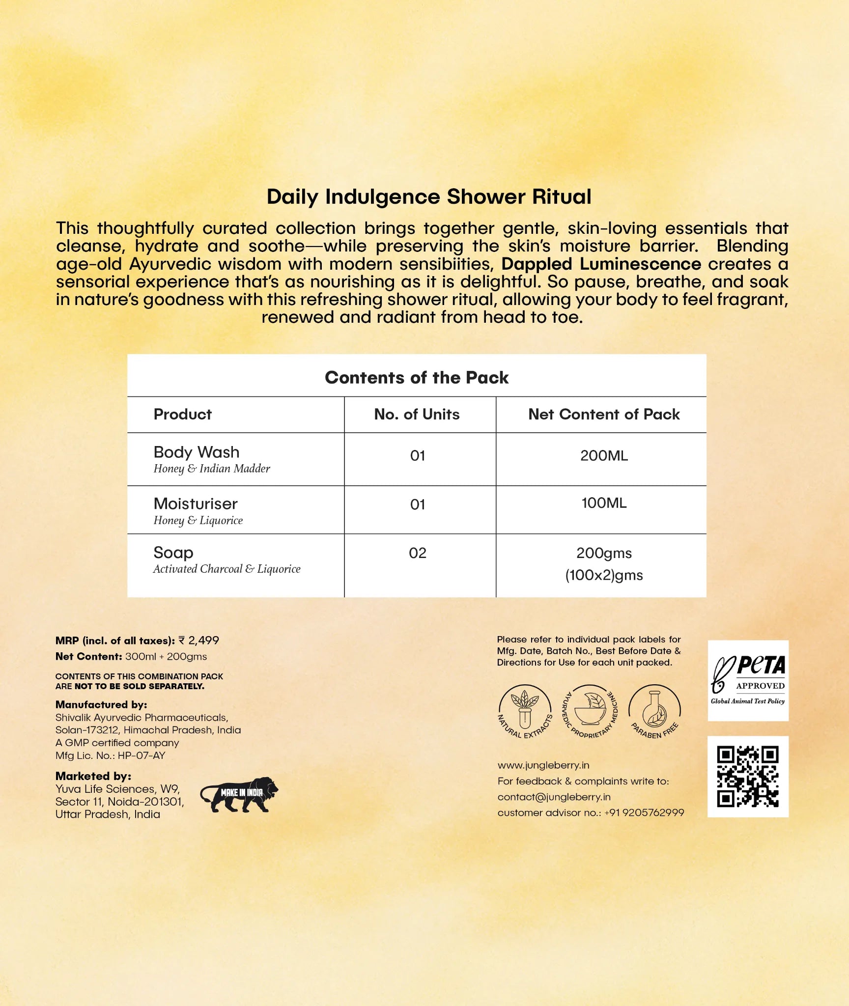 Rooted in nature’s timeless rhythm and powered by JungleBerry’s signature Ayurvedic actives, Dappled Luminescence brings purity, softness and a touch of radiance to your routine.