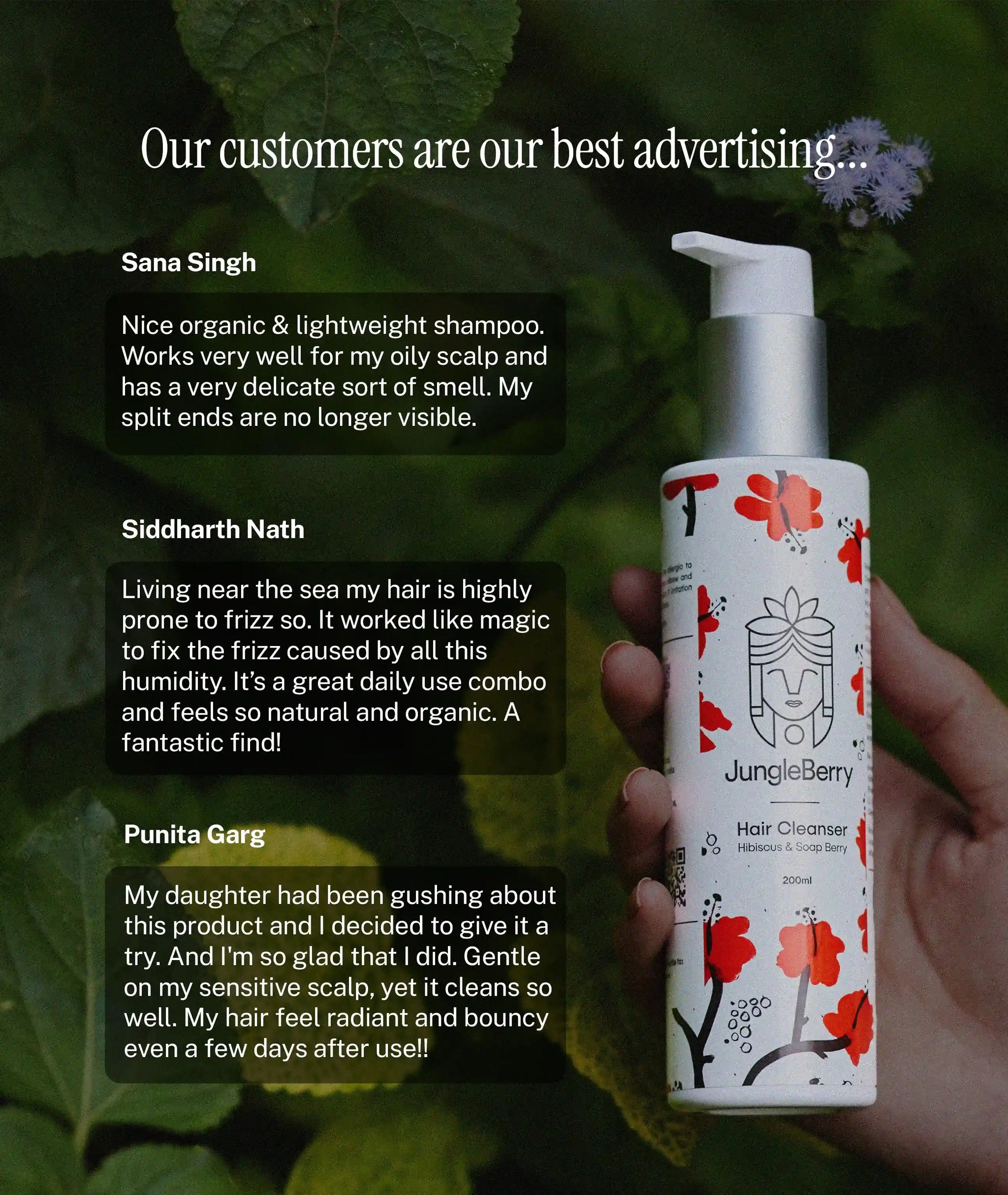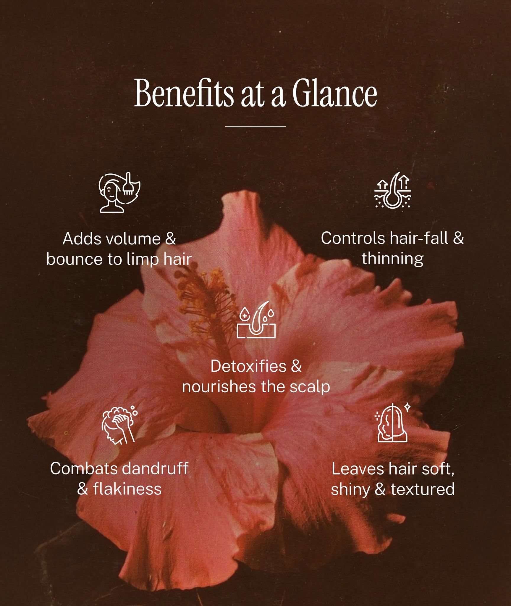 The Hibiscus & Soap Berry Hair Cleanser is a perfect blend of Ayurvedic ingredients that work wonders for volumizing your hair. Reetha, whose seed kernels are chock full of proteins, adds strength to the locks, detoxifying and exfoliating without drying out the scalp. The cleanser is enriched with Vibhitak, whose anti-bacterial properties soothe the scalp and boost blood circulation, resulting in healthier and shinier locks. Japakusum stimulates hair growth by preventing dandruff and thinning, while Ketaki and Nirgundi roots add lustre, bounce and texture to the tresses.